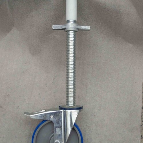 De steigers voldoen uiteraard aan alle gestelde eisen : ENE EN-1004. De wielen zijn dubbel geremd en hebben een diameter van 200mm, het wiel wordt geremd in de draairichting en in de rolrichting. De spindel is 300mm verstelbaar wat zeer handig kan zijn als het grondopppervlak niet mooi egaal is of afloopt.